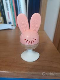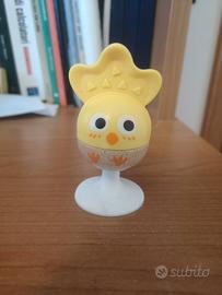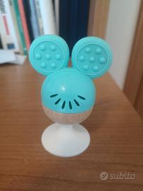 Un simpatico trio di sonagli Hape Cheery Critter. - Design a forma di animale. - Colore turchese e legno naturale. - Base bianca per stare in piedi.