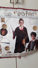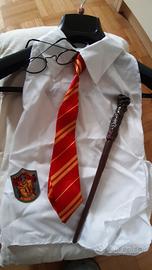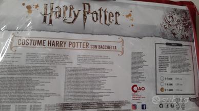 Costume Harry Potter completo di accessori taglia 9-11 anni, con confezione originale.Presenta delle macchie sul davantino bianco, ma mascherabili sotto la cravatta e penso lavabili. Accessori completi e integri.