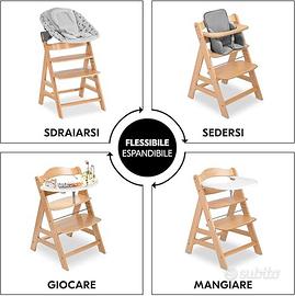 Flessibile: con la possibilità di combinare la sedia evolutiva bambini con gli accessori, è possibile utilizzarla non solo per sedersi, ma anche per sdraiarsi fin dalla nascita e per giocare
