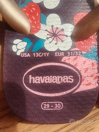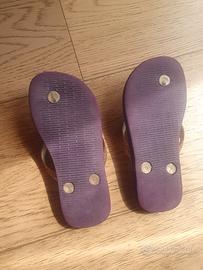 Havaianas infradito da bambina, color viola e oro, con disegni di fiori e fragole, misura 29-30 (eur 31-32), ottime condizioni. A Milano posso consegnare di persona.