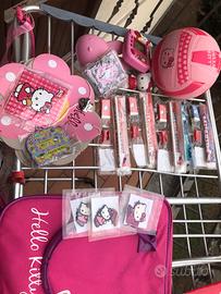 Vendo varie cose di Hello Kitty: palla, scacciapensieri righelli gomme matite, borse varie, beauty e tracolla, sacca. Tutto in blocco a 30,00€