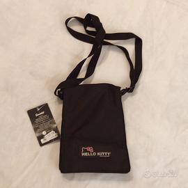 Hello Kitty - Sanrio - borsa a tracolla nera con chiusura a strappo e disegno sul fronte. Cm 21x14,5. Prezzo di cartellino €19,50, in vendita qui a €10,00.
