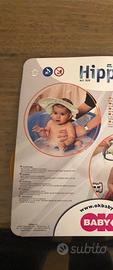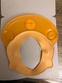 Ciambella in morbida gomma estensibile e visiera in polipropilene rigido . Evita tortura dell acqua nelle orecchie e il sapone negli occhi al bambino.