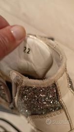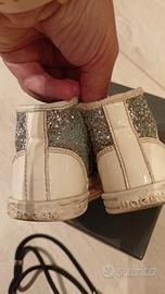 Sneakers Hogan Rebel bambina in vernice bianca con dettagli glitter argento.