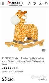 HOMCOM Giraffa a Dondolo per Bambini 3-6 Anni con Ruote e Suoni, 63x38x63cm,