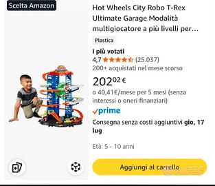 HOT WEELS ULTIMATE GARAGE T-REX, come nuova accessoriata di 2 auto come in origine,ha un costo attuale di 200€ su amazon, vendo a 50€ non trattabile.