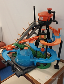 Il playset include un montacarichi a manovella, pista selvaggia, torre dell'acqua, vasca del vortice e 1 macchinina Color Shifters (che potrebbe non cambiare più colore!)