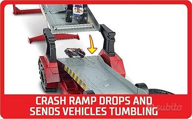Il set è anche un trasportatore per Monster Trucks: basta collegare un Monster Truck Hot Wheels in scala 1:64 alla parte anteriore del set per sfrecciare via