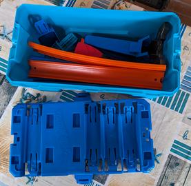 Pratica pista portatile Hot Wheels Track Builder. - Colore blu brillante. - Coperchio con scomparti per riporre le macchinine e i pezzi della pista