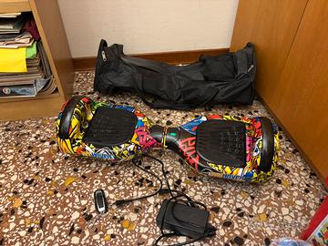 Hoverboard in ottime condizioni(praticamente mai usato)annesso di suo caricatore,sacca per il trasporto e telecomando;dotato di bluetooth riproduce musica,con led,puoi collegarlo al telefono e ascoltare in viva voce la tua musica preferita.