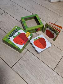 All’interno della scatola, un volume dedicato ai colori con cinque aperture, in cui ogni soggetto è presentato da un’illustrazione e dal relativo nome, e 10 puzzle da 2 pezzi cad. con i soggetti esplorati nel libro. Età di lettura: da 1 anno.