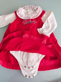 - IANA Baby scamiciato in morbido velluto rosso con ciocca e con sottogonna in cotone rosso abbottonato dietro - taglia 6 mesi - nuovo mai usato.