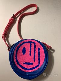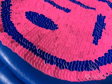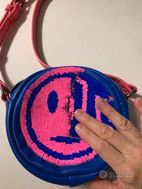 Nuova borsa Desigual per bambina con paillettes che girate in un senso o in un altro disegnano faccine differenti. Con tracolla e taschina interna. Misura diametro 20 cm circa.