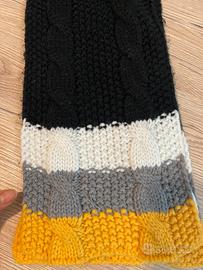 Usata in ottime condizioni Sciarpa lunghezza 140 cm. Sciarpa in caldo e morbido tricot con lavorazione greche jacquard. Pensata in abbinamento alla sua cuffia. Il capo ideale per la stagione più fredda.
