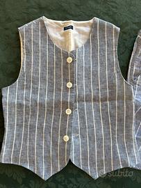 IL GUFO: completo di lino 100% Color grigio carta zucchero/ bianco crema 9/ 10 anni elegante Gilet foderato Tutti i bottoni sono originali Usato per un matrimonio