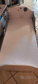 Il lettino misura 145x73cm (0-6 anni) inclusi 2 lenzuoli con angoli e 2 completi copripiumino+federa praticamente nuovi