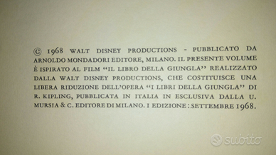 Famosissima opera Walt Disney per bambini, edita nel 1968 da Mondadori, ispirata all'omonimo libro di Kipling, cedo.