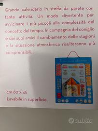 Grande calendario in stoffa da parete (cm 60x46) - lavabile in superficie. Un modo divertente per avvicinare i bambini alla complessità del concetto del tempo.