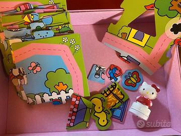 Gioco Il tappeto magico interattivo di Hello Kitty, by Clementoni in italiano. Un maxi puzzle per comporre forme e colori In condizioni molto buone (piccole usure e segni sui bordi); completo di tutti i componenti, in condizioni molto buone, tranne una piccola forma a tetto (vedi foto), che è mancante.
