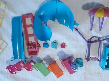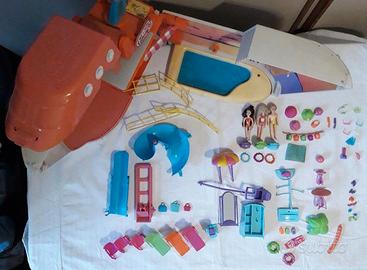Il transatlantico di Polly (Polly in viaggio nel tempo) Product Name: So Hip Cruise Ship Playset Toy Product Line: Polly Pocket Material: Plastic Brand: Mattel Product#: J1680 Released: 2007 Ages: 4+ nella confezione originale 61x35 cm Bambole e accessori per le 10 attività (parasailing, arramppicata, scivolo piscina, vasca relax, ...) E’ presente tutto quello visibile in FOTOGRAFIA e in elenco 1paio scarpa verde aperta 1paio scarpa turchese sandalo 1paio scarpa rosa sandalo 1paio ciabatte arancioni 1paio ciabatte lilla 1paio ballerine lilla 1caraffa amaranto 1frullatore lilla/amaranto 1insalatiera blu 4occhiale verde, blu, rosa, fucsia 1cuffia verde 1walkman verde 2pettine arancione, lilla 1casco rosa 3cappello verde, fucsia, rosa 1pallone 1visiera arancione 1filotto vasi appesi multicolora 1telo mare azzurro giallo 2tavolo tondo arancione, fucsia 1mezzobusto fucsia 1appendiabiti turchese 3borraccia arancione, verde, lilla 1tavola surf lilla 2salvagente verde, rosa 1palma 1armadio 1specchio a terra 1parasailing 3corona tuchese arancione lilla 3trolley azzurro lilla verde 1registratore di cassa 3borse fuscia turchese celeste 3sdraio verde arancione fucsia 3poltrone fucsia 1acensore rosa 1scivolo piscina 3 bambole Polly Pocket - Lea costume duePezzi - Lila costume intero - Rick costume 4 parapetti gialli 1 Polly Pocket poster (mai usato) 1 piscina 1 vasca relax Valuto offerta Disponibile la consegna a mano, su richiesta Milano P.za Frattini Altre foto a richiesta