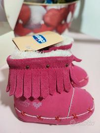 Indianini Chicco numero 16 in camoscio rosa imbottiti con pelliccetta sintetica. Nuovi mai usati ancora con scatola originale. Con 5 euro in più spedisco.