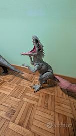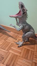 Vendo fantastico esemplare di Indominus Rex, il temibile dinosauro ibrido protagonista della saga Jurassic World (marca Mattel). Il modellino è ricco di dettagli realistici, con pelle testurizzata e arti snodabili. L’Indominus Rex è alto 21,5 cm e lungo 58 cm circa. È dotato di un sistema di movimento e di attivazione dei suoni a due pulsanti: premi il pulsante al centro della schiena per attivare il movimento del braccio ed effetti sonori realistici che ricordano delle lame, e premi quello alla base della coda per attivare la mascella tritatutto e il ruggito! Condizioni: ottime, usato pochissimo e tenuto come pezzo da esposizione. Sotto la zampa si trova il QR CODE per l'app Jurassic World Facts. Nota importante: Il giocattolo è venduto senza scatola originale, ma verrà imballato con la massima cura per la spedizione. Perfetto per amanti dei dinosauri, collezionisti o come regalo per bambini appassionati della saga.