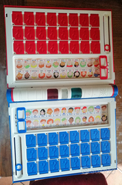 Gioco Indovina chi extra completo di tutto, ci sono 4 schede doppia faccia da poter cambiare. Non funziona la luce lampeggiante, ma non influenza lo svolgimento del gioco. È possibile incontrarci a Roma e castelli romani oppure spedizione disponibile tel 3930694602