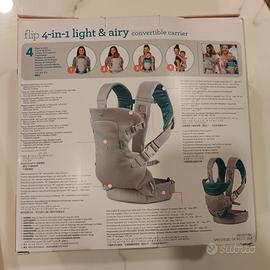 Il marsupio convertibile Infantino Flip 4 in 1, leggero e traspirante, offre 4 posizioni di trasporto e supporta bambini di peso compreso tra 3,6 e 14,5 kg. Include una seduta ergonomica, un supporto per la testa regolabile, una rete traspirante e spallacci extra imbottiti per un maggiore comfort.