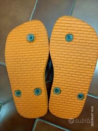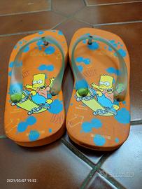 Sono delle splendide infradito arancioni per bambino o bambina con raffigurato Burt Simpson sullo Skate. Sono meravigliose e soprattutto nuove e assolutamente mai usate e si vede benissimo. Purtroppo non conosco la misura esatta, ma le ho misurate e misurano 18 cm.