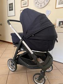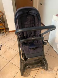 Inglesina Aptica passeggino e culla blu. La culla è completa di due coprimaterassini inglesina traspiranti e base per poter tenere la culla in casa senza le ruote. Passeggino utilizzabile fronte mamma e fronte mondo. Ruote massicce adatte anche a superfici più difficoltose. Coperture raggi spf UV 50+