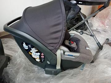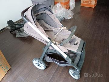 Inglesina Aptica System Quattro: telaio con ruote, passeggino, navicella + 2 materassi welcome POD (1 materasso welcome POD ancora nuovo), base stand up navicella, ovetto con riduttore e sua base isofix Darwin Inglesina, parapioggia marca giordani. MAX 22 KG L'ovetto può essere montato sia in auto che sul telaio con ruote. La navicella idem (in auto solo con sistema cinture).