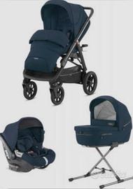 L'Inglesina Aptica XT nella colorazione Polar Blue è un sistema modulare "all-terrain" progettato per affrontare terreni irregolari grazie a sospensioni regolabili e ruote di grandi dimensioni.