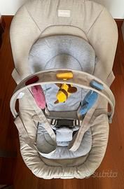Sdraietta Lounge di Inglesina, Benessere e Relax sono le parole d'ordine, puoi regolare l’inclinazione della sdraietta Lounge in 3 posizioni tramite il comando centralizzato, per un abbassamento graduale e controllato. Music Box integrata, con 3 melodie musicali classiche e regolazione del volume aiuterà il tuo bambino a rilassarsi e a conciliare il sonno. I tre simpatici e soffici personaggi colorati con effetti tattili e sonori unici stimolano la crescita cognitiva del tuo bambino, la barrà è agganciabile in diverse posizioni per rendere i giochi sempre raggiungibili dal bambino. Caratteristiche Prodotto: Sdraietta Lounge Colore: Butter Peso: 3,3 Kg Peso massimo di carico: 9 Kg Dimensioni: 47 x 85 x 22 cm Seduta: Ampia e imbottita Riduttore: Morbido e realizzato in maglina di jersey, con retro in rete 3D per favorire la circolazione dell’aria e la traspirabilità Cintura di sicurezza: Rivestita in morbido jersey per evitare arrossamenti Leva blocca dondolio: Per passare velocemente dalla posizione fissa a quella basculante Facilmente trasportabile Sfoderabile e lavabile: Il rivestimento e il riduttore sono facilmente sfoderabili e lavabili a mano a 30°C Incluso con Lounge Sdraietta - Cuscino riduttore per i primi mesi - Toy Bar con 3 pupazzetti - Music Box con tre melodie