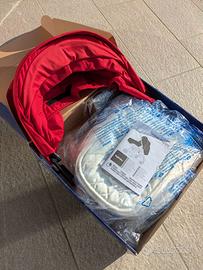 Inglesina navicella Sweet Puppy per trasformare il passeggino Zippy Light in culla. Composto dalla culla imbottita che comprende le cinture, il tettuccio per il sole e il copri piedini ripararli dal vento. Colore rosso, usato poco e in ottime condizioni.