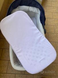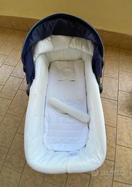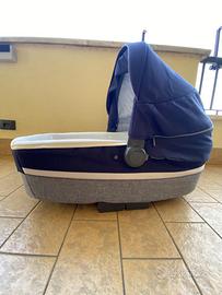 Sistema modulare compatto e leggero che segue la crescita del bambino dalla nascita fino ai 20 kg. Dotato di seggiolino auto omologato secondo la normativa europea ECE R44/04 per il gruppo 0+ (da 0 a 13 kg). Ideale per chi ricerca comfort e benessere per il proprio bambino, senza rinunciare alla praticità. La carrozzina, dalle generose dimensioni interne 76 x 37 cm, garantisce il massimo benessere al bambino grazie allo schienalino regolabile e al sistema di controllo. È ideale in tutte le stagioni grazie alle finestre di areazione e alla capottina con frontalino estensibile realizzata in tessuto con trattamento per la protezione ai raggi UV (UPF 50+). All’interno della culla è presente l’esclusivo Welcome Pad, il supporto che favorisce il mantenimento confortevole della posizione supina aiutando a tenere le vie aeree allineate. Il seggiolino auto Huggy permette di viaggiare nei primi mesi in totale comfort e sicurezza grazie all’angolo di inclinazione e al sistema di protezione dagli urti laterali. Dotato di morbido riduttore per i porimissimi mesi in morbida maglina di jersey. Il passeggino Trilogy è reversibile e si chiude con la seduta agganciata sia nella configurazione fronte mondo che fronte genitore. Completamente reclinabile assicura al bambino sonni comodi e protetti dalla capottina estensibile con protezione solare UPF 50+. Si apre e si chiude con una sola mano e una volta chiuso rimane in piedi da solo evitando che il tessuto o il maniglione tocchino terra e si sporchino. Dimensioni interne culla: 76 x 37 x 22 cm Dimensioni esterne seggiolino auto: 44 x 59 x 54 cm Peso seggiolino auto: 3,7 Kg Dimensioni passeggino aperto: 50 x 105,5 x 82 cm Dimensioni passeggino chiuso: 28 x 98 x 44 cm Peso passeggino: 9,5 Kg Comprensivo anche di: - Stand up (mai utilizzato) - retina per le zanzare (per navicella) - secondo materassino mai utilizzato (per navicella) - para pioggia (non originale inglesina) sacca sottostante presenta qualche piccolo buco dovuto all'usu