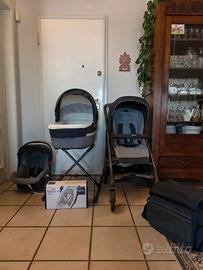 Vendo Trilogy City dell'Inglesina. Comprende: culla, Welcome Pad™ + materassino, standup, borsa, telaio, kit auto carrypot 3P, seduta passeggino e seggiolino auto Huggy Multifix omologato secondo la normativa europea ECE R44/04 per il gruppo 0+ (da 0 a 13 kg). La culla garantisce il massimo benessere al bambino. È facile e pratica da utilizzare e permette viaggi confortevoli e sicuri. Il Kit Auto 3P Carrycot per Trilogy di Inglesinapermette al tuo neonato di viaggiare in maniera comoda e pratica nella Navicella. Comprende cinghia a 3 punti, dispositivo di collegamento e cuscinopoi c'è Welcome Pad™, progettato in collaborazione con il reparto di Neonatologia dell’Ospedale Maggiore di Bologna e realizzato in osservanza delle più recenti linee guida scientifiche in termini di benessere e sicurezza. Welcome Pad™, in abbinata al materassino, sul quale viene adagiato, crea un supporto ergonomico importantissimo durante la delicata fase dei primi mesi di vita del bambino. Realizzato in schiuma compatta con 40 fori di aerazione e rivestito in fibra di bambù che lo rende altamente traspirante, ipoallergenico e antibatterico.