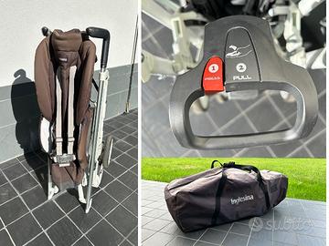 Dispone anche di coperta/sacco per temperature rigide e di altri accessori (borsa per il cambio, copertina per le gambe, portabottiglie, borsone originale per trasporto).