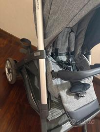 Passeggino in ottime condizioni, tenuto davvero molto bene, senza usure e righe evidenti, completo di: telaio, passeggino reclinabile con cappotta e copertura per gambe, navicella con piedistallo e materassino, ovetto.