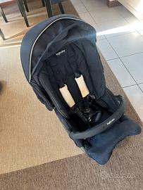 Conservato tutto molto bene, passeggino, culla completa di tutto, materassino copriculla cuscini ergonomici, telo pioggia passeggino, borsa porta tutto, seggiolino auto con base ( comprata a parte ), copri seggiolino estivo in cotone spugna, soecchietto retrovisore da appoggiatesta. L’unico difetto sono i salsicciotti delle cinture del oasseggino che si sono un po ingialliti.
