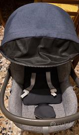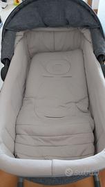 Il set comprende: culla con coprigambe, Welcome Pad con materassino, standup, passeggino con coprigambe, porta bibite, telaio utilizzabile per culla/passeggino e ovetto, seggiolino auto. Grazie alle generose dimensioni della culla può essere utilizzata per i primi 6 mesi, anche quando è avvolto in un sacco invernale o quando indossa una tutina imbottita. Lo schienale regolabile facilita la digestione dopo la poppata e la regolazione in più posizioni con meccanismo centralizzato consente al bambino di osservare il mondo esterno anche da sdraiato. Al suo interno si trova il Welcome Pad in abbinamento al materassino, esso crea un supporto ergonomico durante la delicata fase dei primi mesi di vita del bambino. Realizzato in schiuma compatta con fori di aerazione e rivestito in fibra di bambù lo rende altamente traspirante, ipoallergenico e antibatterico. Lo standup permette di trasformare la culla in un vero e proprio lettino per la notte, posizionandola in modo sicuro. Il telaio si apre e si chiude con una sola mano anche con la seduta del passeggino montata e una volta chiuso è compatto e resta in piedi da solo. Il passeggino garantisce il massimo comfort al bambino grazie alla seduta molto ampia, allo schienale reclinabile, alla capotta estendibile realizzata in tessuto con trattamento anti UV con fattore di protezione UPF 50+, agli spallacci imbottiti delle cinture e dello spartigambe, che evitano il contatto delle cinture con la pelle del bambino. Il seggiolino auto garantisce la massima protezione in caso di urti laterali, grazie alla tecnologia Side Head Protection. Rivestimento tessile sfoderabile e lavabile a 30°C. Imballi ancora originali.