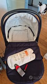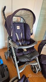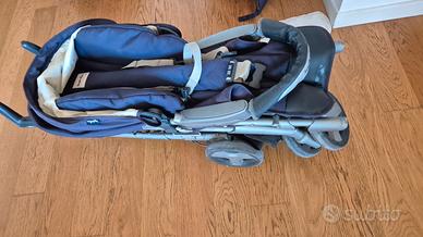 Vendo inglesina Zippy Trio blu completa di navetta (2 cuscini + materassino + cinture e supporto per auto), ovetto con supporto per auto, passeggino completo di coprigambe, telo antipioggia, zanzariera e borsa. Usato ma in condizioni buone. Sono stati riparati e rinforzati i delicati supporti a uncino sul telaio del passeggino che servono per aprirlo e chiuderlo (vedi foto) .