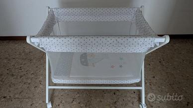 Miniculla in legno facilmente trasportabile con ruote, adatta per neonati. Usata pochissimo per cui in condizioni pari al nuovo