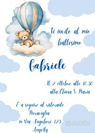 Inviti battesimo personalizzabili da inviare direttamente su whatsapp o per email agli invitati. Temi disponibili: