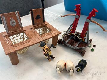 Isola attrezzata con balestra catapulta per difendersi dagli attacchi dei draghi, monta carichi per sollevare la piattaforma con le rocce ottime condizioni il gioco presenta oggetti come da scatola, e istruzioni originali. Un draghetto con ala rovinata e 3 scalini riparati tutto come in foto. Assieme viene regalato il set 9461 lanciatore di pecore in cui è da sostituire un elestico
