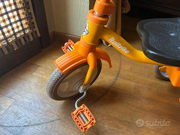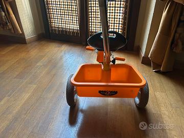 Il triciclo Passenger è il triciclo con maniglione dai colori retrò e linea Classica, un triciclo accessoriato per qualsiasi viaggio, il perfetto compagno per imparare a stare in equilibrio ancor prima di pedalare. Ideale per apprendere la stabilità sulle tre ruote mentre l’adulto spinge il velocipite attraverso il maniglione di spinta posteriore; perfetto per coordinare il movimento circolare delle gambe con le braccia per sterzare e intraprendere la direzione verso nuove avventure. Il Triciclo Passenger ha un robusto telaio in acciaio verniciato, manubrio cromato, una seduta confortevole ed ergonomica, un comodo contenitore posteriore e non dimentichiamoci il simpatico freno a mano sul lato destro. Le ruote sono piene antiforatura e la ruota anteriore è dotata del sistema “ruota libera” che permette al tuo bambino di appoggiare i piedi sui pedali quando sei tu a spingerlo evitando che girino e creino spiacevoli impatti con le gambe; non appena il bambino è autonomo, ed ha appreso il movimento può pedalare verso nuove avventure. Un prodotto dal design vintage