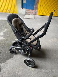 Passeggino reversibile con ammortizzatore corredato da cerata antipioggia e ombrellino, carrozzina adattabile per auto Janè Matrix light comprensivo di riduttori morbidi, supporto isofix da auto girevole.