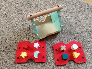 Questa piccola casa in legno permette ai bambini di sviluppare la motricità fine e il loro senso di osservazione manipolando 8 figure colorate, così come il loro senso logico. Memorizzando e riconoscendo le figure, capiscono rapidamente la posizione di ogni pezzo colorato. Sul retro, c'è un orologio con due lancette che il bambino può regolare a suo piacimento. Crescendo, il bambino avrà imparato facilmente a leggere l'ora sull'orologio grazie ai numeri colorati.