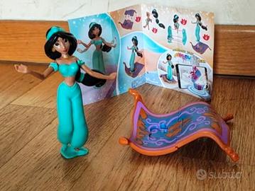 Ecco la Principessa Jasmine con il suo vestito elegante composto da top corto turchese e pantaloni fluidi. Fa parte del gruppo Disney Princess. Con Jasmine anche il mitico tappeto volante