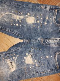 Bellissimi jeans da bambina 4/5 anni, con strappi e decorazioni, perline e accessori. Come nuovi