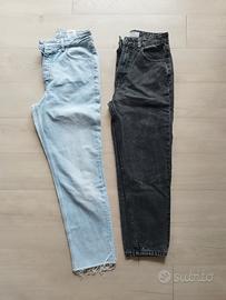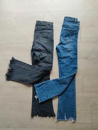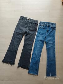 abbigliamento bimba donna: - 2 jeans Wide zara grigio spalmato su parte della gamba in colore glitter iridescente tono su tono, zara taglia 9 anni. nero con borchie circolari applicate. h&M taglia 8-9 anni. regolabili in vita. perfetti. €8 - 2 pantaloni denim flared. nero con fondo asimmetrico taglia 12 anni, regolabile senza elastico, misura 3/4. blu taglia 38. vestono 12 anni. €8 - 2 jeans straight Pimkie e Bershka mom fit. taglia 34. perfetti. €7,50